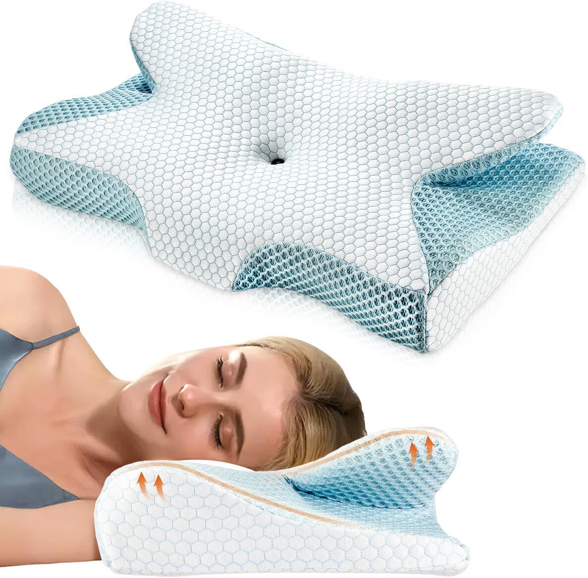 Perna de sustinere a gatului din spuma cu memorie Oyajia, perna pentru dormit pe o parte, perna anti-sforait pentru dormitul pe lateral, pe spate, pe burta