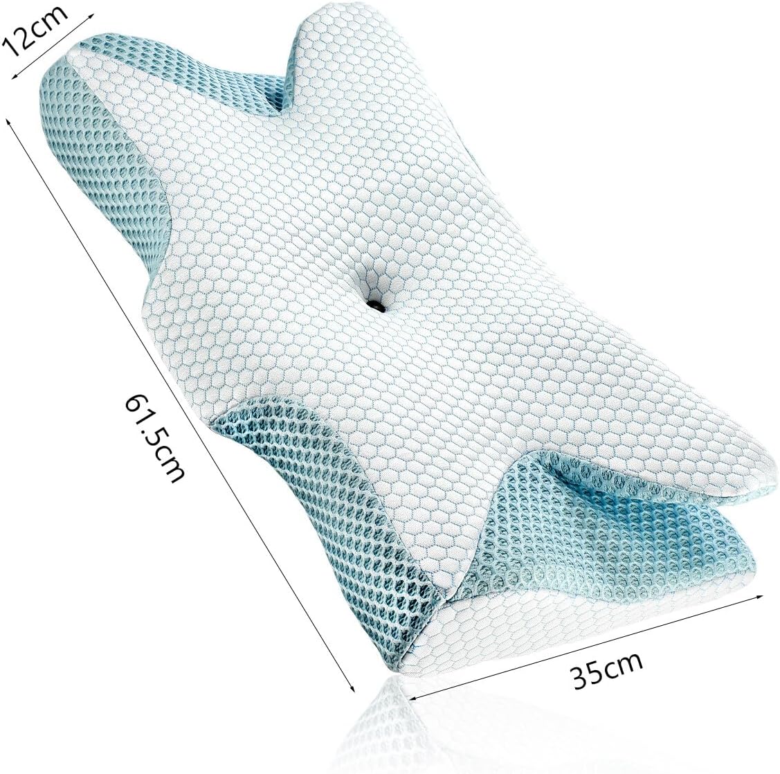 Doua optiuni de inaltime: perna are o dimensiune de 62 x 35 x 12 cm. Persoanele care stau intinse si au probleme cu gatul pot folosi partea mai inalta a pernei, in timp ce persoanele care dorm pe o parte pot folosi partea inferioara pentru a obtine un sprijin mai bun pentru cap si gat.